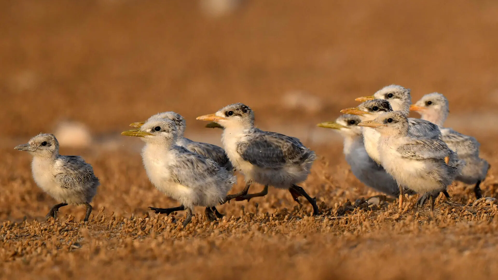 Baby Lesser Crested Terns (Thalasseus bengalensis) on Kubbar Island, Kuwait