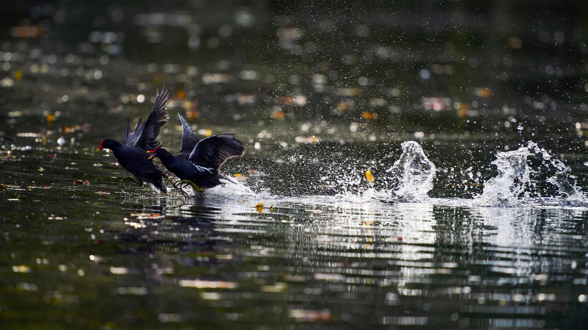 Moorhens on the lake at Sefton Park, Liverpool, England, UK.jpg