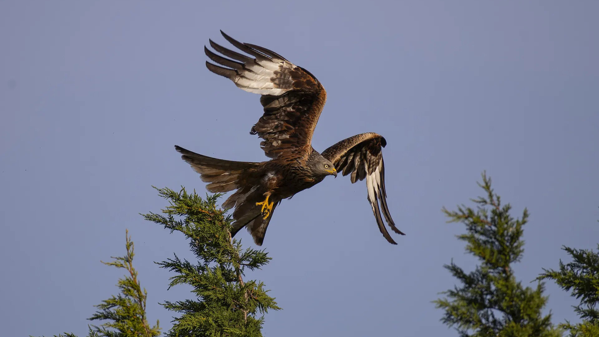 - Red Kite (Milvus milvus) takes off from the top of tree in High Wycombe, Buckinghamshire, England, UK.jpg
